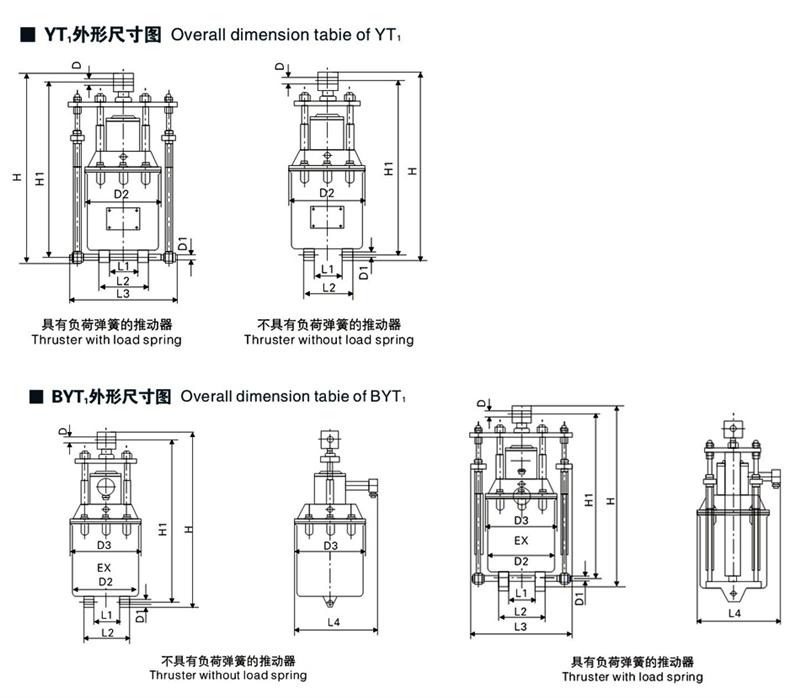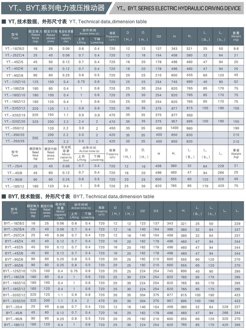 電力液壓推動器是一種集電機、離心泵、油缸為一體,結構緊湊的驅動控制裝置,廣泛用作各種塊式制動器和盤式制動器的驅動裝置,還可以用于各種工業閥門、閘門、定向擺動和轉動(<90°)裝置及夾緊裝置的驅動控制。?性能及結構特點?■ YT1系列推動器附加裝置