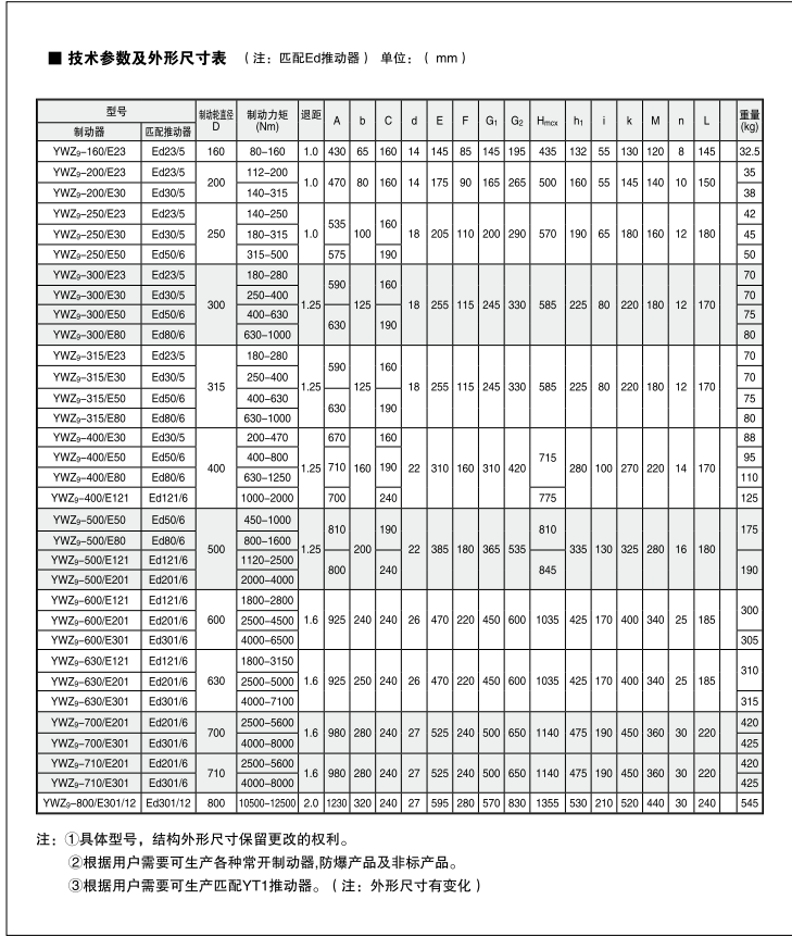 如有需要請聯系手機:15225835568微信同號電話:0391-7588600傳真:0391-7588860  電力液壓制動器是使機械中的運動件停止或減速的機械零件。俗稱剎車、閘。制動器主要由制架、制動件和操縱裝置等組成。有些制動器還裝有制動件間隙的自動調整裝置。為了減小制動力矩和結構寸, 制動器通常裝在設備的高速軸上,但對性要求較高的大型設備(如礦井提升機、電梯等)則應裝在靠近設備工作部分的低