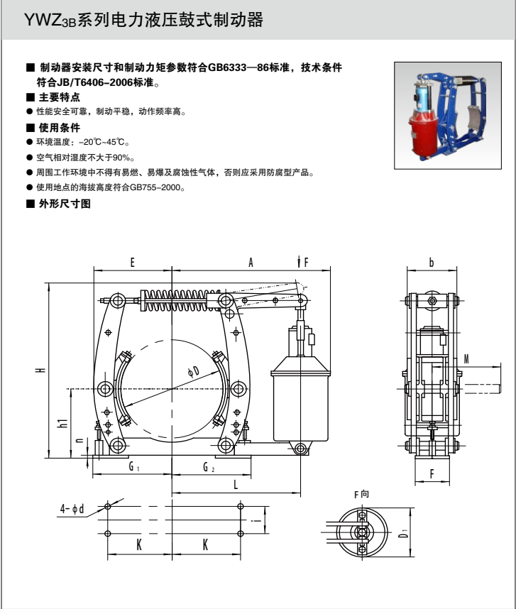 電力液壓塊式制動器廣泛用于起重、冶金、礦山、港口、碼頭、建筑機械等機械驅動裝置的減速或停車制動。性能可靠,制動平穩,動作頻率高。主要擺動鉸點設有自潤滑軸承,傳動效率高、壽命長,在使用過程中無需潤滑。