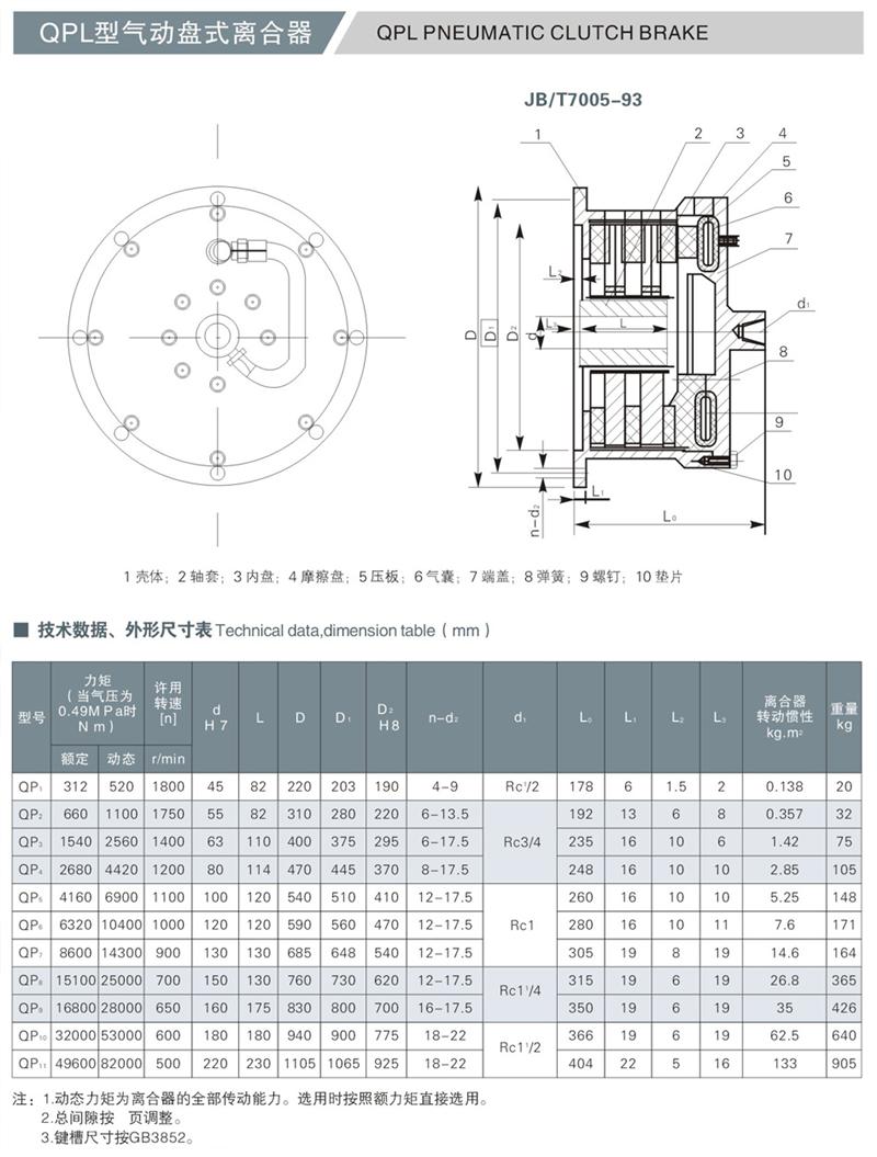 QPL型氣動盤式離合器具有制動和傳遞扭矩大、制動離合迅速、結構簡單、工作可靠、維護方便等優點,廣泛應用于冶金、起重、石油鉆采、造紙以及木材加工等行業中。