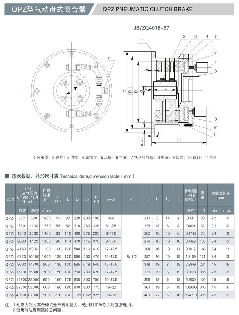 QPL型氣動盤式離合器具有制動和傳遞扭矩大、制動離合迅速、結構簡單、工作可靠、維護方便等優點,廣泛應用于冶金、起重、石油鉆采、造紙以及木材加工等行業中。型號:QPZ1/QPZ2/QPZ3/QPZ4/QPZ5/QPZ6/QPZ7/QPZ8/QPZ9/