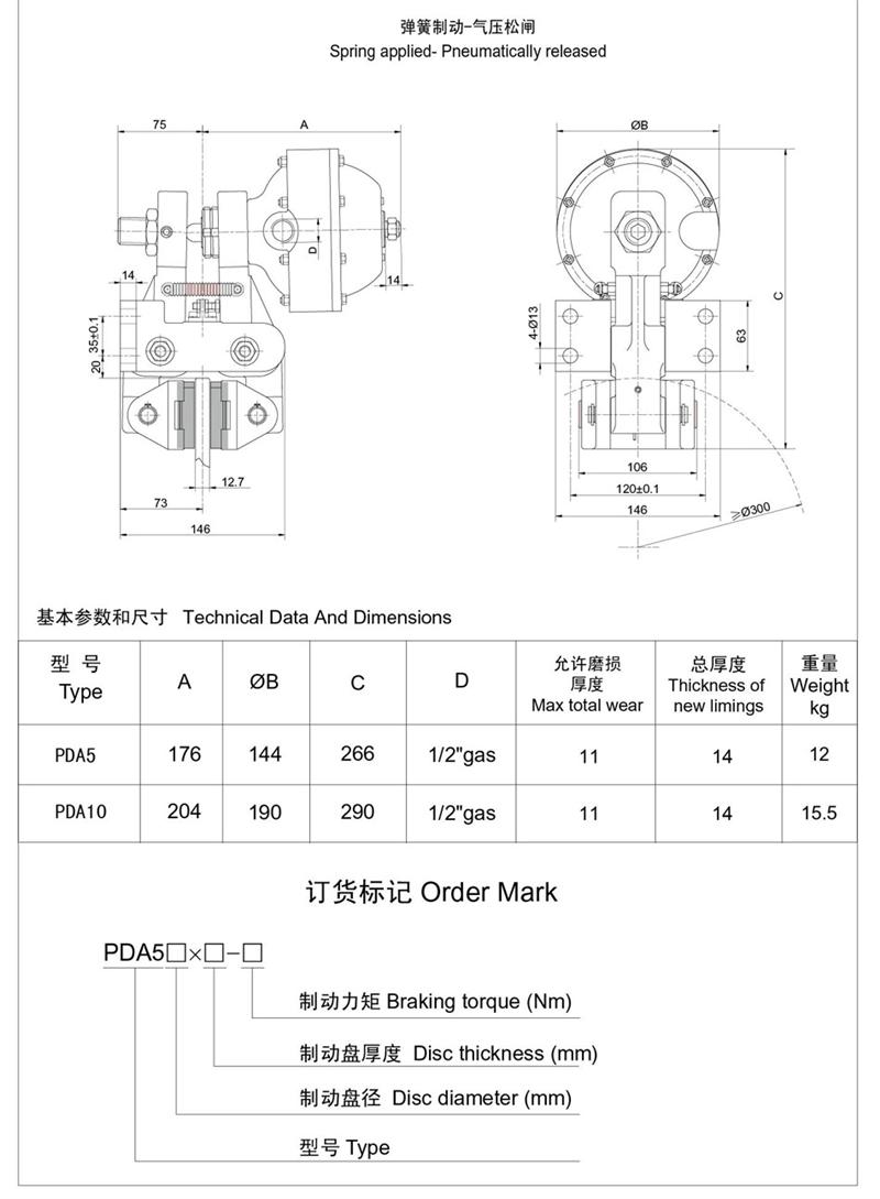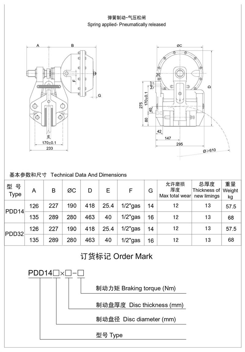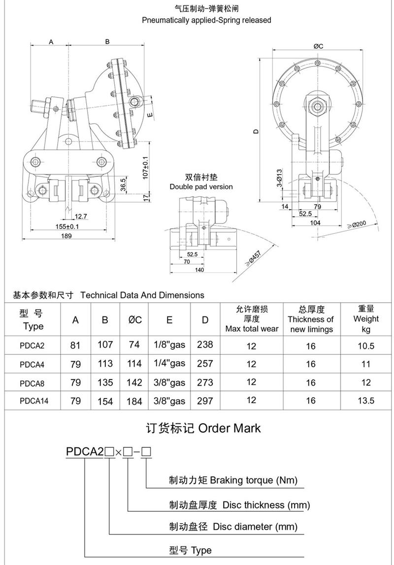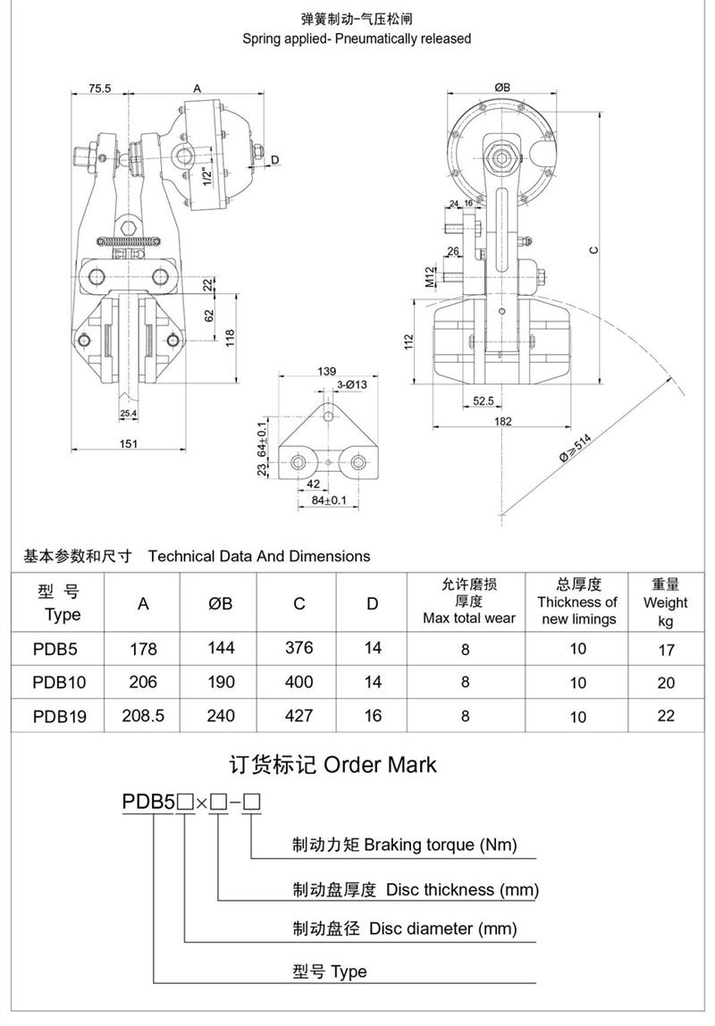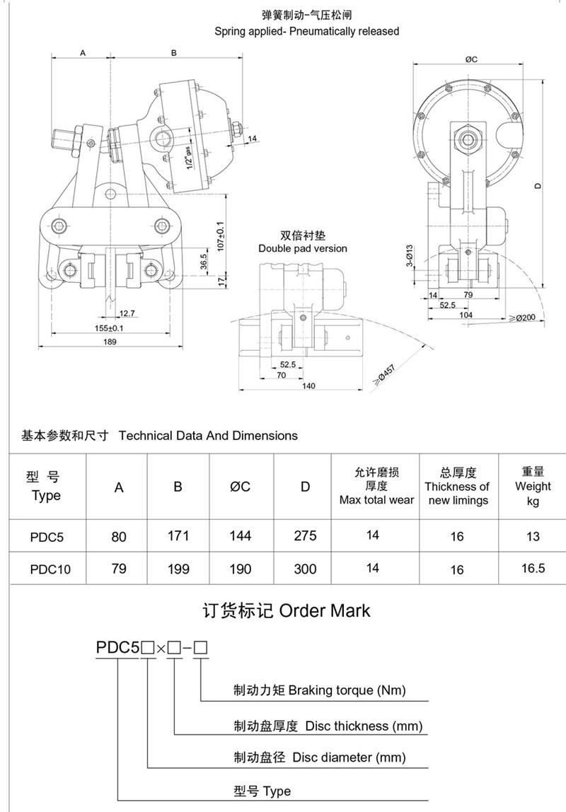 ■有常閉式設計:彈簧制動,氣動釋放(開閘);有常開式設計:由氣壓制動,彈簧釋放,制動力可隨氣壓的改變而變化,使用時可根據需要靈活改變。